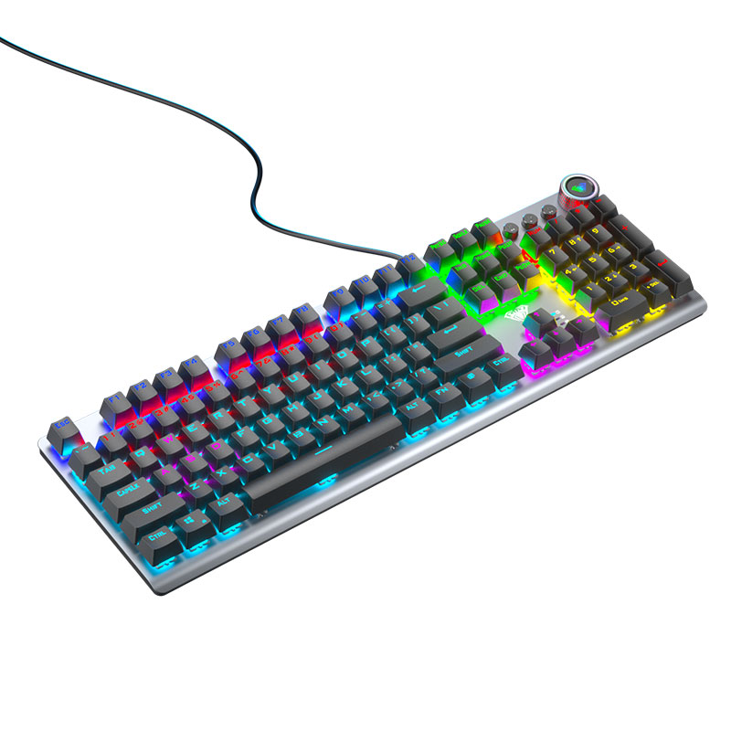 Switches: BLUE Acionamento: Mecânico Hot Swap: Sim Formato: Full Size Layout:ABNT2(108 KEYS) Conectividade: Cabeado (USB-C e USB padrão) Software: Sim Iluminação: Ajustável
